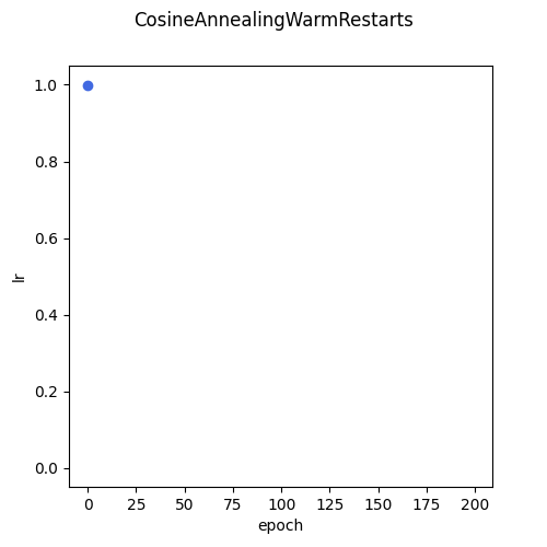 scheduler = optim.lr_scheduler.CosineAnnealingWarmRestarts(optimizer, T_0=T_0, T_mult=T_mult)